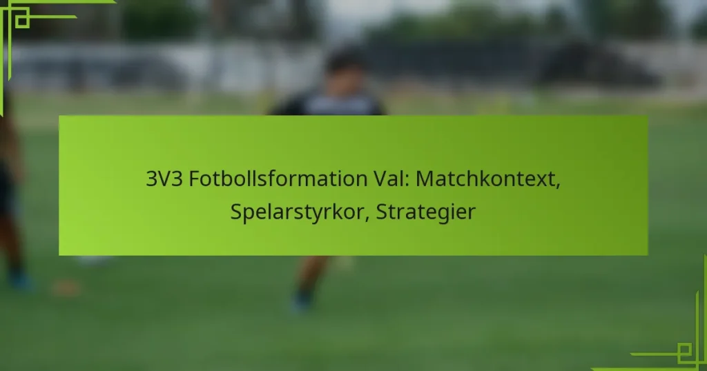 3v3 fotboll kräver en unik strategi som betonar taktiska strategier, inklusive effektiva formationer och rörelsemönster. Framgång beror på spelarnas tekniska färdigheter och deras förmåga att anpassa sig till spelets snabba tempo. Genom att förstå och reagera på olika spelscenarier kan lag förbättra sin prestation och utnyttja sina styrkor samtidigt som de minimerar svagheter.
