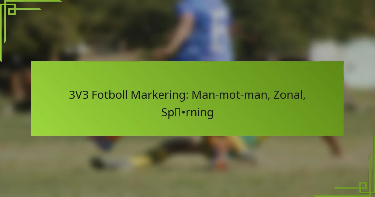 I 3v3-fotboll är effektiva markeringstrategier avgörande för defensiv framgång. Man-man-markering tilldelar varje spelare en motståndare, vilket främjar individuell ansvarighet, medan zonmarkering fokuserar på att täcka specifika områden av planen för att förbättra lagkoordinering. Dessutom innebär spårning att noggrant följa motståndarna för att begränsa deras alternativ och upprätthålla press, vilket gör det till en viktig komponent i defensivt spel i detta snabba format.